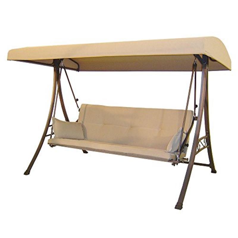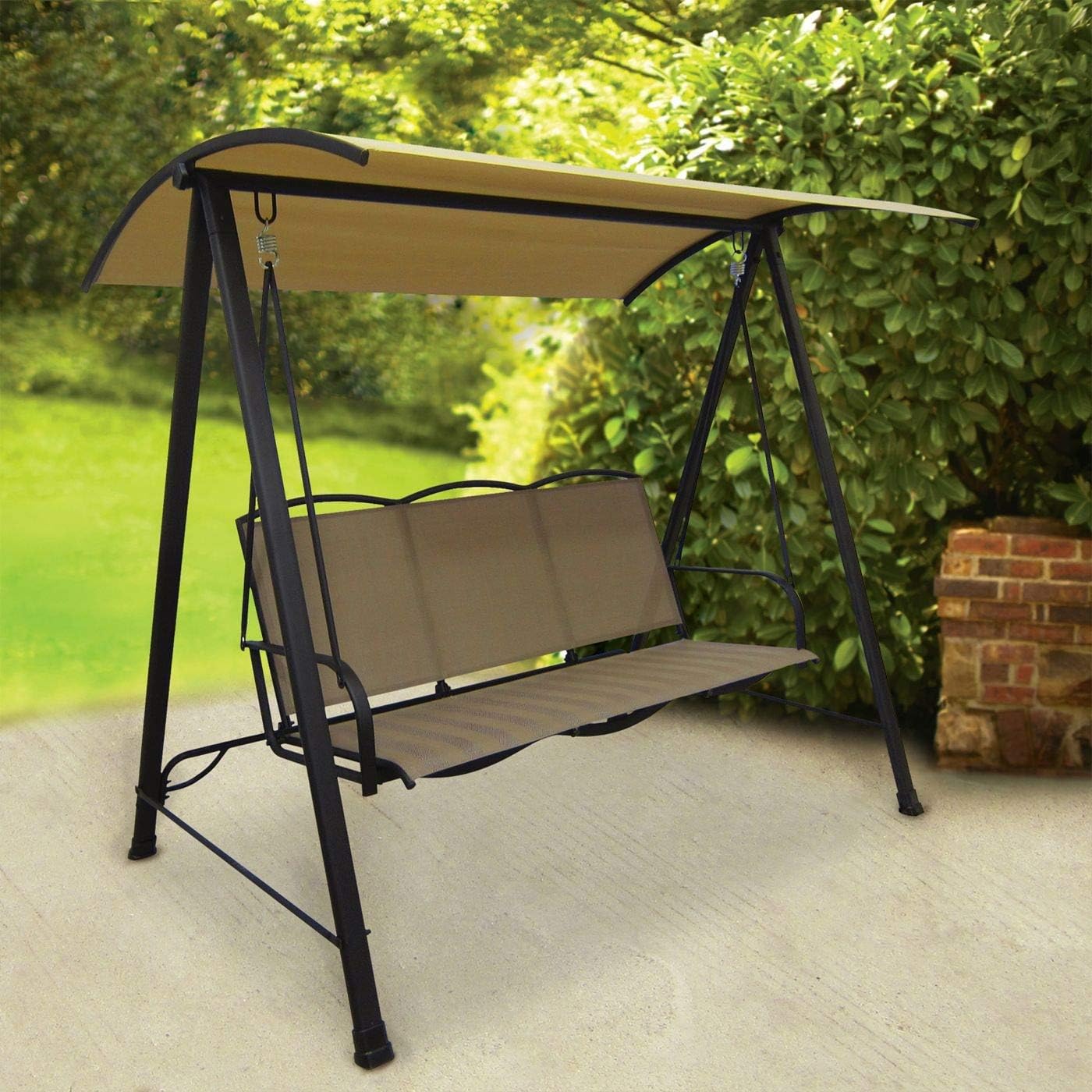 Amazon Com Classic Patio Porch Sling Swing With Shade Canopy Tan Seats 3 Garden Outdoor